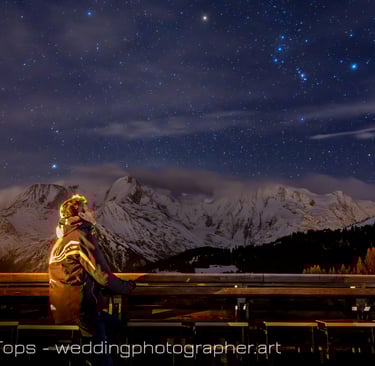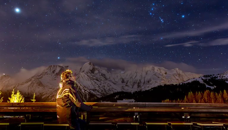 La photo de nuit face au Mont Blanc est de l'astrophotographie, elle a été filtrée, traitée, mais ici: pas de montage! Tout le gros du travail se fait à la prise de vue, photoshop devient donc inutile pour avoir ce résultat.
