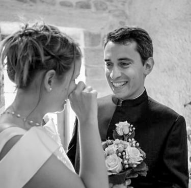 " Nous avons passé plusieurs heures à visionner les photos de notre mariage. Ce n'était que du bonheur ! Tout y est: la qualité, le professionnalisme, le naturel, l'humour et surtout les émotions. Grâce à ton travail, nous avons eu la chance de pouvoir revivre la journée de notre mariage heure par heure, sous un angle différent. Grâce aux rushs, nous avons découvert une multitude de petites scènes que nous avions manquées... un vrai régal. Tu nous avais aussi dit que tu te ferais tout discret... le pari est réussi. Nous te remercions pour ta gentillesse et ta disponibilité, et te souhaitons plein succès pour le futur. Quant à nous, nous restons fans de ton travail. "